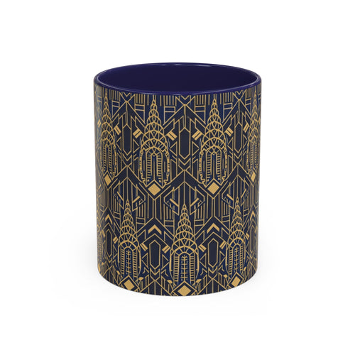 Art Deco Chrysler Building Navy & Gold Accent Coffee Mug — Manhattan Art Deco Pattern 11 oz