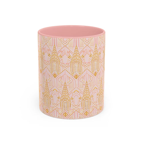 Art Deco Chrysler Building Pink & Gold Accent Coffee Mug — Manhattan Art Deco Pattern Mug 11 oz